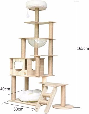 Op maat gemaakte grootte Hout Cat Tower met Multi-Level Climbing Frame Scratcher Components