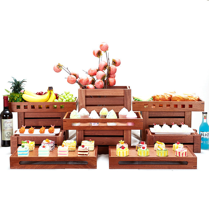 Aanpasbaar logo Acceptabel 3 niveaus Houten cake Fruit Display Stand voor dessert