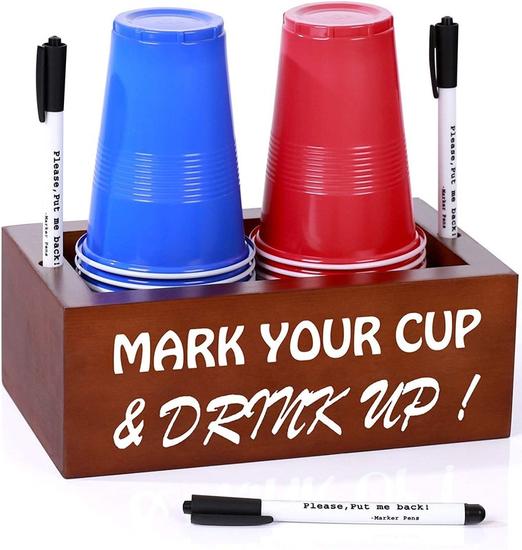 Robuuste en duurzame bekers: Onze Solo Cup Holder is speciaal gemaakt van hoogwaardig premium dennenhout met een glad oppervlak, niet gemakkelijk te breken en duurzaam voor gebruik.Het kan je bekers en marker bij elkaar houden en georganiseerdDeze 100% dennenhouten bekertas is makkelijk schoon te maken.